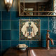 Embrace the mysteries of life and art with this stunning Ceramic Tile, featuring a captivating Art Deco design. A meticulously rendered skeleton takes center stage, bathed in a radiant sunburst of golden rays against a neutral background. The surrounding frame boasts intricate geometric patterns in deep blues, rich greens, and shimmering gold accents, reminiscent of the glamorous Art Deco era. This unique piece is perfect for adding a touch of sophisticated, vintage charm to any space, whether as a standalone decorative accent or as part of a larger tiled installation. Its detailed artistry and striking color palette make it a conversation starter and a timeless addition to your home décor.