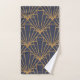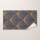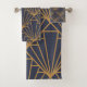 This towel set has an Art Deco design of diamonds and triangles in gold on a field of blue.