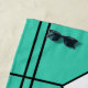 This beach towel has an art deco stained-glass window design of diamonds and lines in white, black, and turquoise.