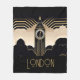 Big Ben and his tower is done in a beautiful black and gold art deco style.