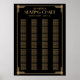Black Great Gatsby Art Deco style wedding alphabetical seating chart with gold orange text - you can add Bride's and Groom's name, wedding date and guest's names (approximately 280 guests) and table numbers.