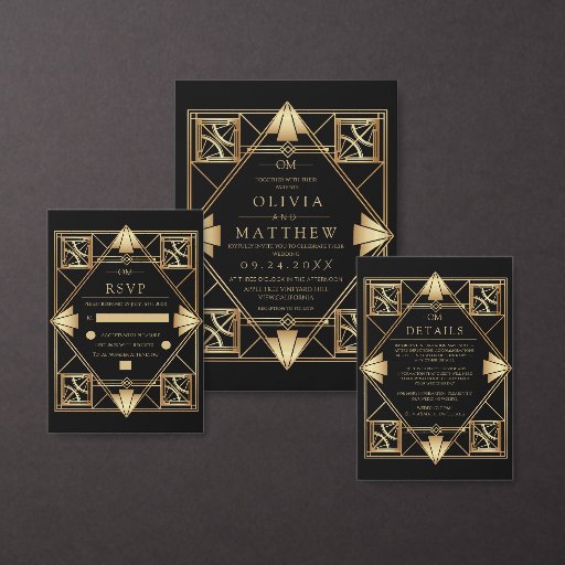 Art Deco Black and Gold Geometric Wedding Acrylic Invitations