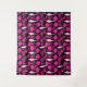 ART DECO BLACK PINK FUCHSIA FLOWERS,WHITE PARROTS TAPESTRY