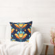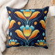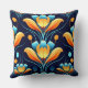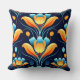Art Deco blue orange flowers Cushion