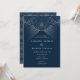 Make the most amazing Great Gatsby wedding day with these Art Deco Wedding Invitations, and reflect your unique style. They are featuring string lights inspired by the flapper dresses from the roaring 1920s. This vintage design has some light grey string lights making the centre of attention and setting the tone for your event. The wording is in a modern white font with some light grey script font elements on an elegant rich navy blue background. The backer features an art deco pattern that matches the invite all over. You can customise the font, colour and size for all the elements.