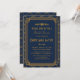 These bridal shower invitations feature a blue and gold colour palette, a geometric frame, geometric patterns, and other stylistic details all inspired by Art Deco and the roaring twenties. You can customise the sample text fields to your liking.