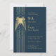 Art Deco Butterfly Blue and Gold Wedding Invitation