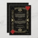 Glamourous Casino Royale and Art Deco 20s themed card design. It features vintage art deco style, a Roaring 1920's old Hollywood faux gold frame, playing cards suits (simulating playing cards), on gold black Art Deco pattern background. Use Personalise tool to add your information. For more, visit please, my Glam Roaring 20's Wedding Collection.