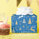 Make your holiday gifts extra special with custom name wrapping paper. This elegant design features vintage-style illustrations inspired by the opulence of the Art Deco era. It includes leaping reindeer, festive Christmas trees and stars, paired with stylish retro typography. Personalise the template with the recipient's name, or your family surname. A unique design that combines timeless style with a modern twist! This seamless pattern gift wrap is available with a matte or glossy finish. Printed colours: blue, white, and a gold colour.