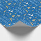 Art Deco Christmas Reindeer Custom Name Blue Gold Wrapping Paper