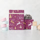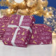 Make your holiday gifts extra special with custom name wrapping paper. This elegant design features vintage-style illustrations inspired by the opulence of the Art Deco era. It includes leaping reindeer, festive Christmas trees and stars, paired with stylish retro typography. Personalise the template with the recipient's name, or your family surname. A unique design that combines timeless style with a modern twist! This seamless pattern gift wrap is available with a matte or glossy finish. Printed colours: purple-pink plum, white, and a gold colour.