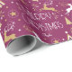 Art Deco Christmas Reindeer Custom Name Plum Gold Wrapping Paper
