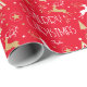 Art Deco Christmas Reindeer Custom Name Red Gold Wrapping Paper