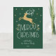 Art Deco Christmas Reindeer Photo Green Gold Holiday Card