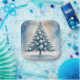 This festive simple minimalist Christmas Holiday ornament features an art deco Christmas tree with luxury ornaments and blue abstract background. This fancy ornament is a great way to remind loved ones that you're thinking of them this Winter Holiday Season.