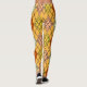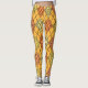 These leggings have an art deco design of diamond shapes made from overlapping angles in black lines coloured in shades of orange and yellow with diagonal black lines making the design look like argyle
