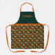 This apron features vibrant oranges and sliced citrus arranged in a refined Art Deco–inspired composition. Set against a deep emerald green background, the design blends bold geometric linework, sunburst motifs, and elegant gold accents with richly colored oranges and glossy green leaves. The result is a sophisticated yet lively aesthetic that evokes vintage glamour, classic Hollywood elegance, and timeless luxury. Name is customizable.
