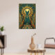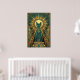 This playful art deco black cat climbs a stylized teal curtain with golden motion trails trailing behind. The geometric curtain folds and dynamic upward composition capture 1920s energy perfect for kitchens, hallways and creative spaces.