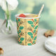 This paper cup features Leslie Sigal Javorek's contemporary adaptation of an Art Deco style Japanese wallpaper from the 1920's. Highly stylised strawberry plants w/ emerald green leaves climb a buttercup yellow wall between black polka dot trellises. See coordinating home decorating products at HoMeArts.