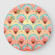 Art deco pattern featuring daisies. Done in colours of coral, turquoise and gold.