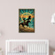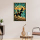 A stunning blend of Western action and Art Deco elegance set against a tropical horizon. This intricate illustration features a cowgirl silhouette expertly swinging a lasso while riding a galloping horse along a sandy beach. A second wild horse rears in the background, framed by a glowing golden ring and a radiant sunburst. With its unique mix of palm trees, ocean waves, and geometric desert patterns in teal and gold, this poster is a must-have for those seeking a sophisticated, coastal-western aesthetic.