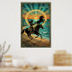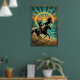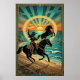 Art Deco Cowgirl Lasso Horse Beach Sunset Poster