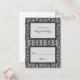 A black Art Deco-inspired damask pattern makes up the background for this classic wedding place card. Your customised information stands out in the soft grey frame. Versatile enough to use for any special occasion when you need place cards. Just fold in half to make it self-standing. Available in alternate colours with matching products.
