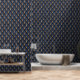 Art Deco Dark Blue and Gold Shells Wallpaper