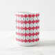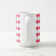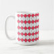 This mug has an art deco design of white hexagons with a black line down the middle and pink diamonds.