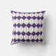 This throw pillow has an art deco design of white hexagons with a black line down the middle and pink diamonds.