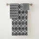 This towel set has an art deco design of overlapping diamonds in black on a field of white.