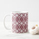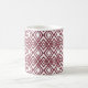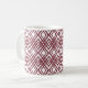 This mug has an art deco design of overlapping diamonds in sangria on a field of white.
