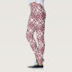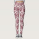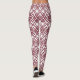 These leggings have an art deco design of overlapping diamonds in sangria on a field of white.
