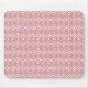 This mouse pad has an art deco design of overlapping diamonds in pink on a field of white.