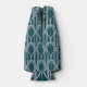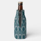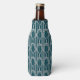 This bottle cooler has a design made of domes and vertical lines in silver on a field of blue.