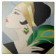 Gorgeous art deco lady on decorative ceramic tile. Great colors throughout and ideal to display throughout your home.