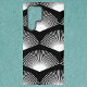 Do you like art deco inspired phone cases? This phone case has a white fan art deco pattern on a black background.