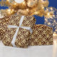 Digital reproduction of a classic, Art Deco wallpaper fan pattern gift wrap- chocolate brown on creamy beige, embellished with gold
