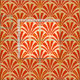 Digital reproduction of a classic, Art Deco wallpaper, fan pattern fabric - deep mandarin orange on pale, sherbet orange, embellished with gold
