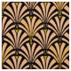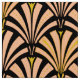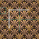 Digital reproduction of a classic, Art Deco wallpaper, fan pattern fabric - pale peach pink / buff on black, embellished with gold