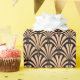 Digital reproduction of a classic, Art Deco wallpaper fan pattern gift wrap - pale peach pink / buff on black, embellished with gold