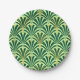 Digital reproduction of a classic, Art Deco wallpaper fan pattern - pine green on light mint green, embellished with gold