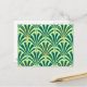 Digital reproduction of a classic, Art Deco wallpaper fan pattern postcard - pine green on light mint green, embellished with gold