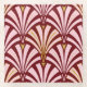 Digital reproduction of a classic, Art Deco wallpaper, fan pattern glass coaster - pink and burgundy, embellished with gold