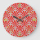 Digital reproduction of a classic, Art Deco wallpaper fan pattern - rich, lipstick red on pearl grey, embellished with gold
