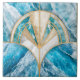 Art Deco Fan Shell - Blue and White Marble Ceramic Tile