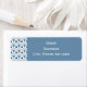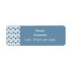 These return address labels have an art deco design of dusty blue diamonds with diagonal lines and dark blue diamonds on a field of white.