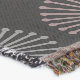 This throw blanket has an art deco design of a right angle with lines at other angles within it in silver, gold, and copper, repeating at different positions. If you like the design but prefer different colours, message me.