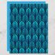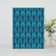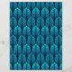 Paper in a vintage Art Deco wallpaper pattern based on a stylised feather in shades of cerulean and peacock blue on a dark navy / indigo blue background