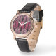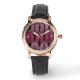 Watch in a vintage Art Deco wallpaper pattern based on a stylised feather - deep fuchsia pink and soft pink, on a black background
